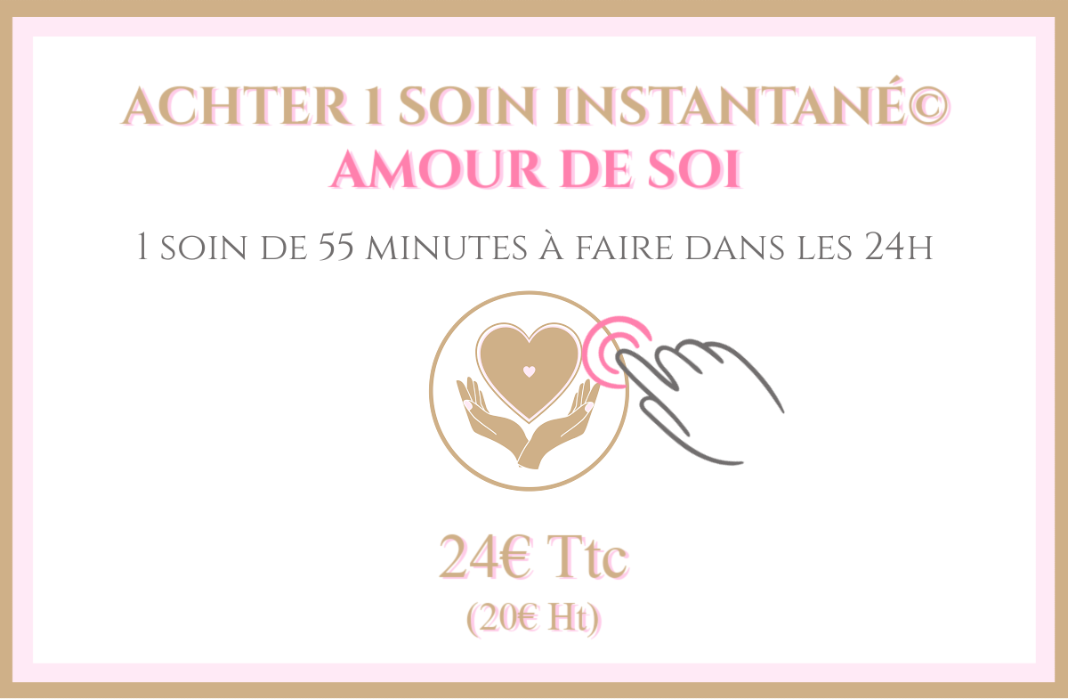 Le Soin Instantané© d'Amour de Soi a été conçu pour vous permettre de ressentir physiquement et émotionnellement l'Amour pour vous même lorsque vous n'arrivez plus à vous y connecter et à le ressentir au quotidien.